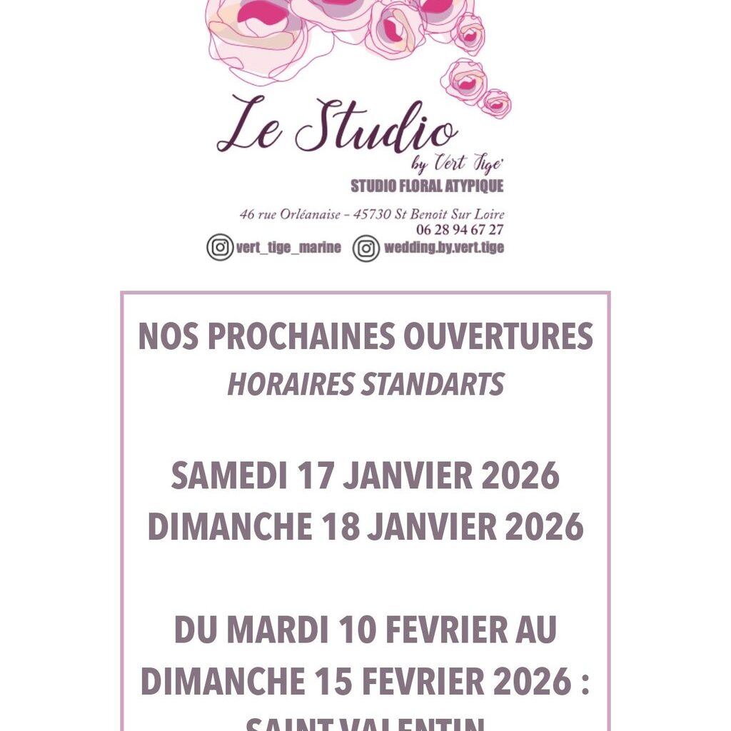 💐Prochaines ouvertures du studio