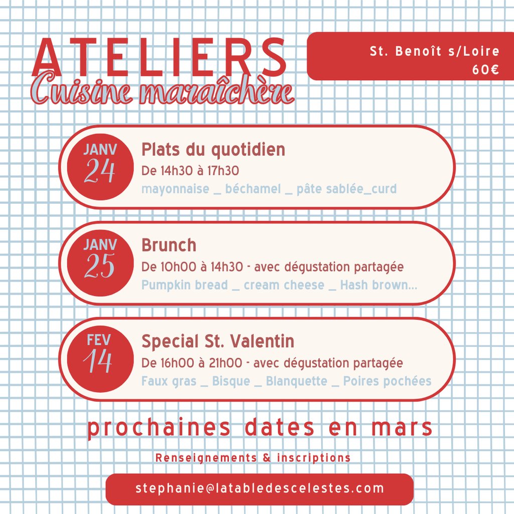 J’ouvrirai exceptionnellement les portes pour vous proposer des ateliers de cuisine uniques, dans l’ambiance chaleureuse et conviviale que vous connaissez.